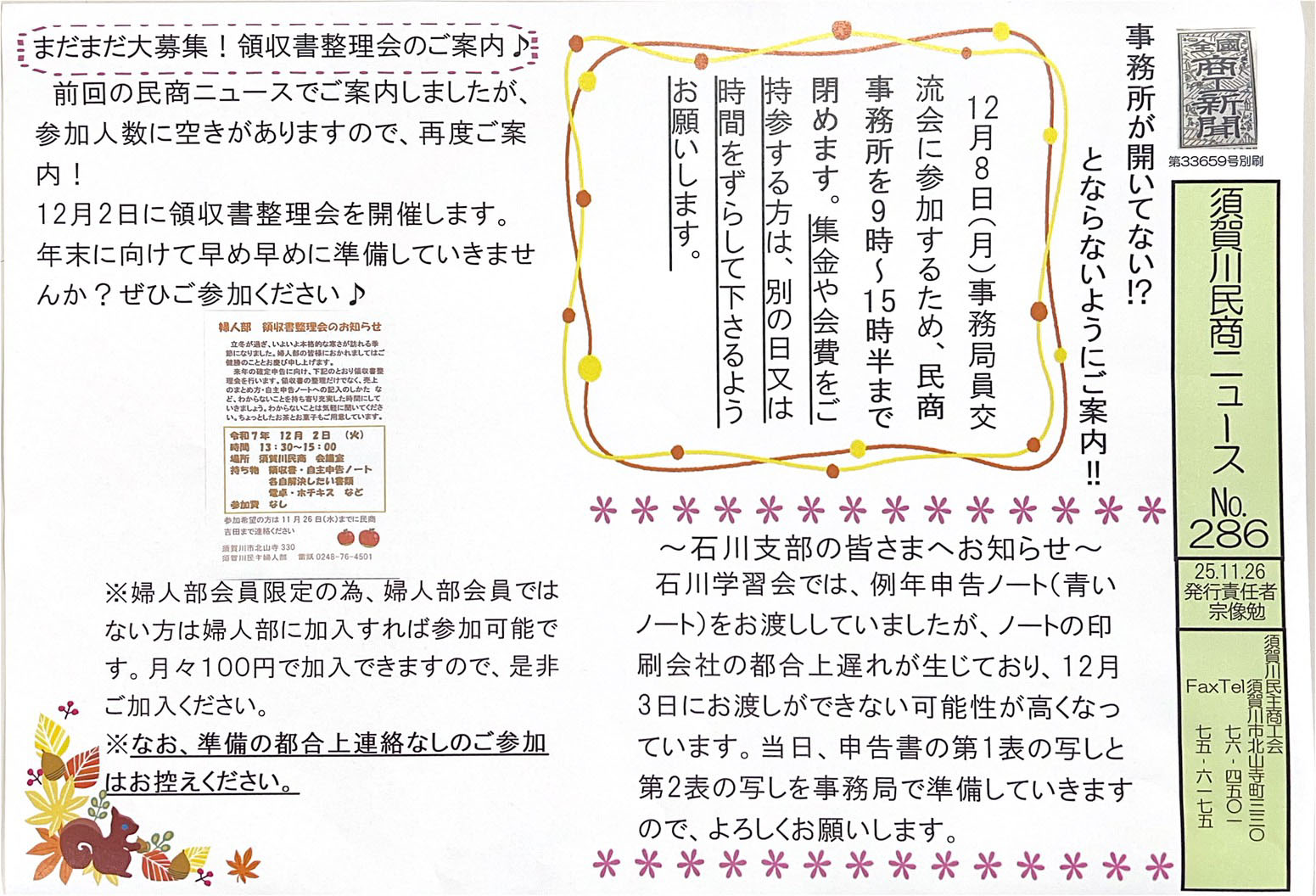 - 〇事務所が開いていない、とならないようにご案内!(12月8日9~15時)