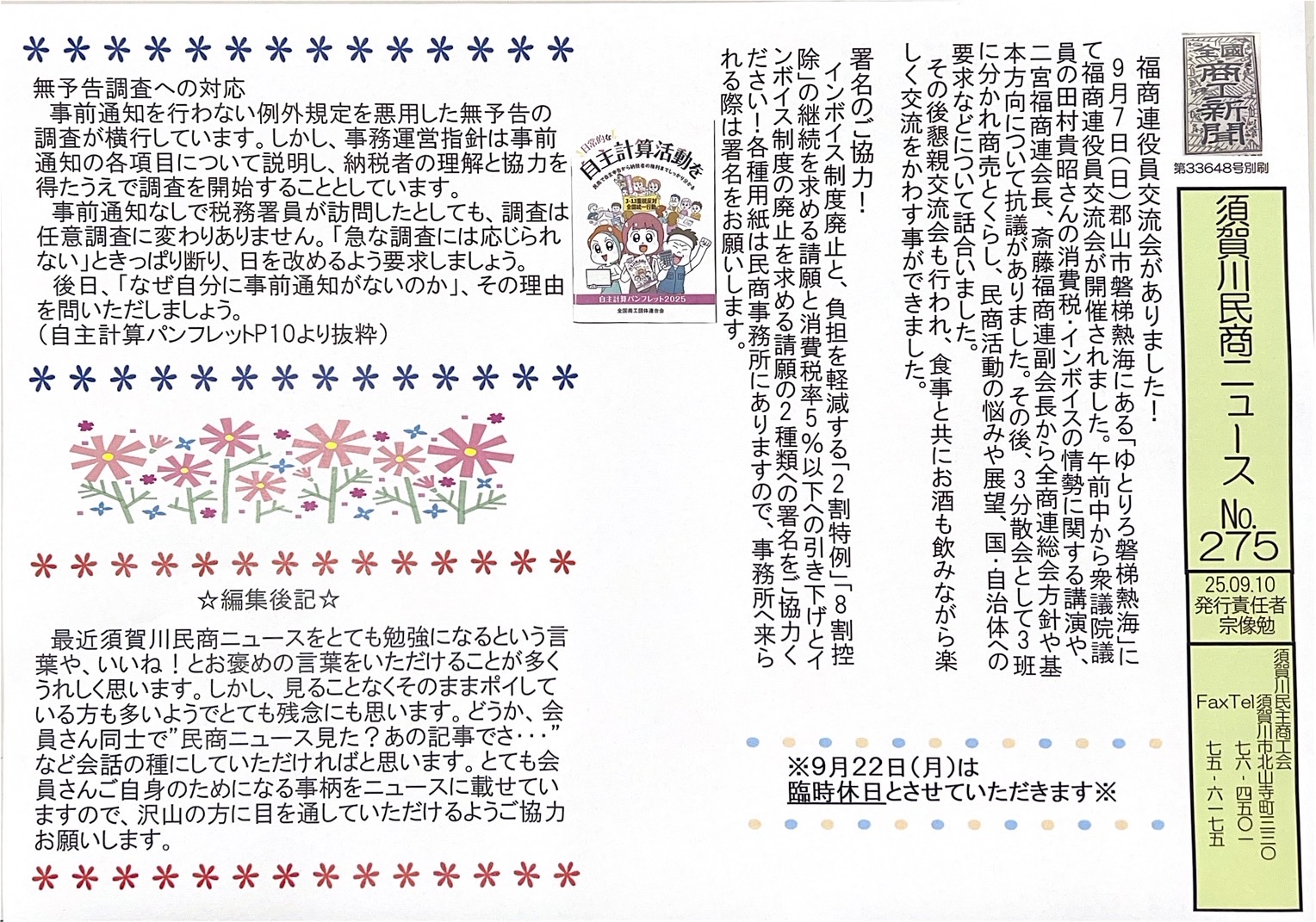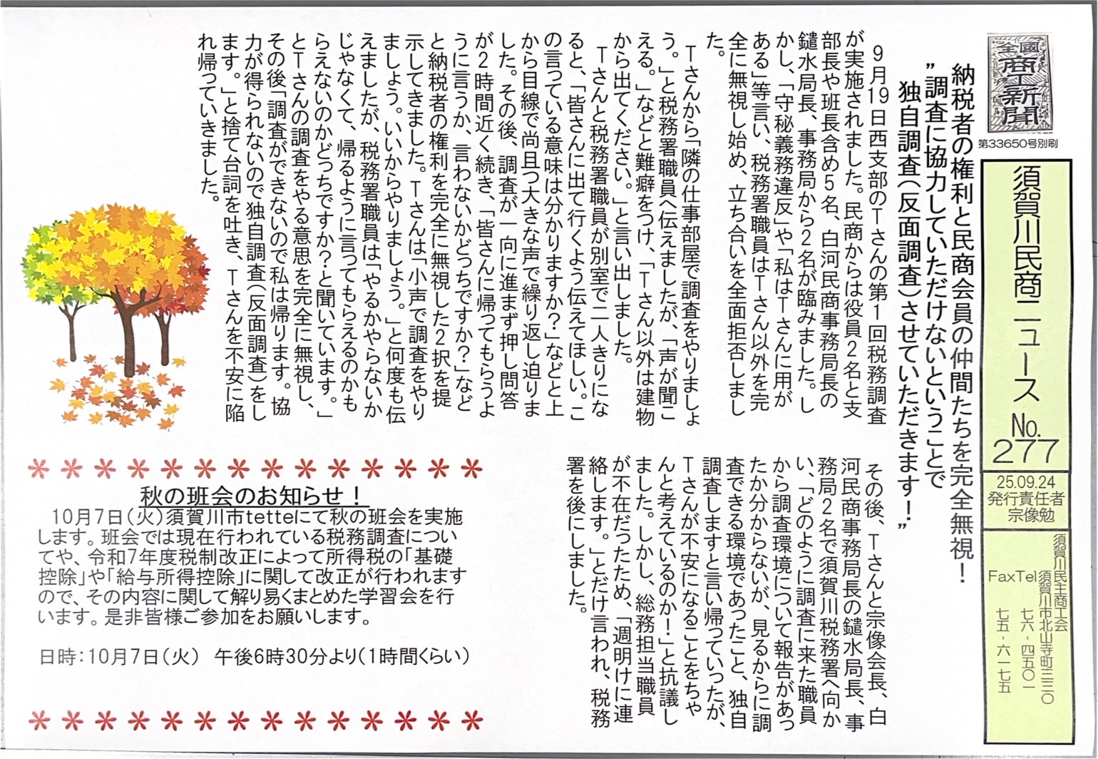 - 〇納税者の権利と民商会員の仲間たちを完全無視!